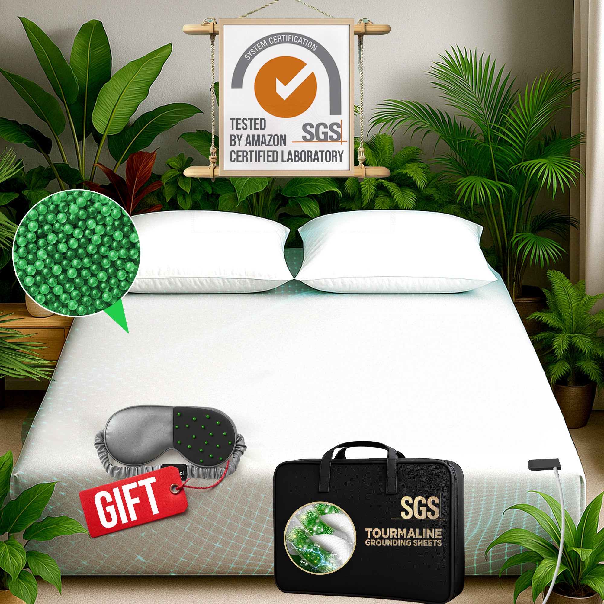 Conductivity: Electrons from the Earth, which are naturally negatively charged, flow through the conductive fibers into your body. This process helps neutralize excess positive charges that accumulate in your body due to exposure to electromagnetic fields (EMFs) and environmental static. By stabilizing your body’s electrical state, the sheet supports a reduction in inflammation, muscle tension, and discomfort, which can lead to a more restful and rejuvenating night’s sleep.