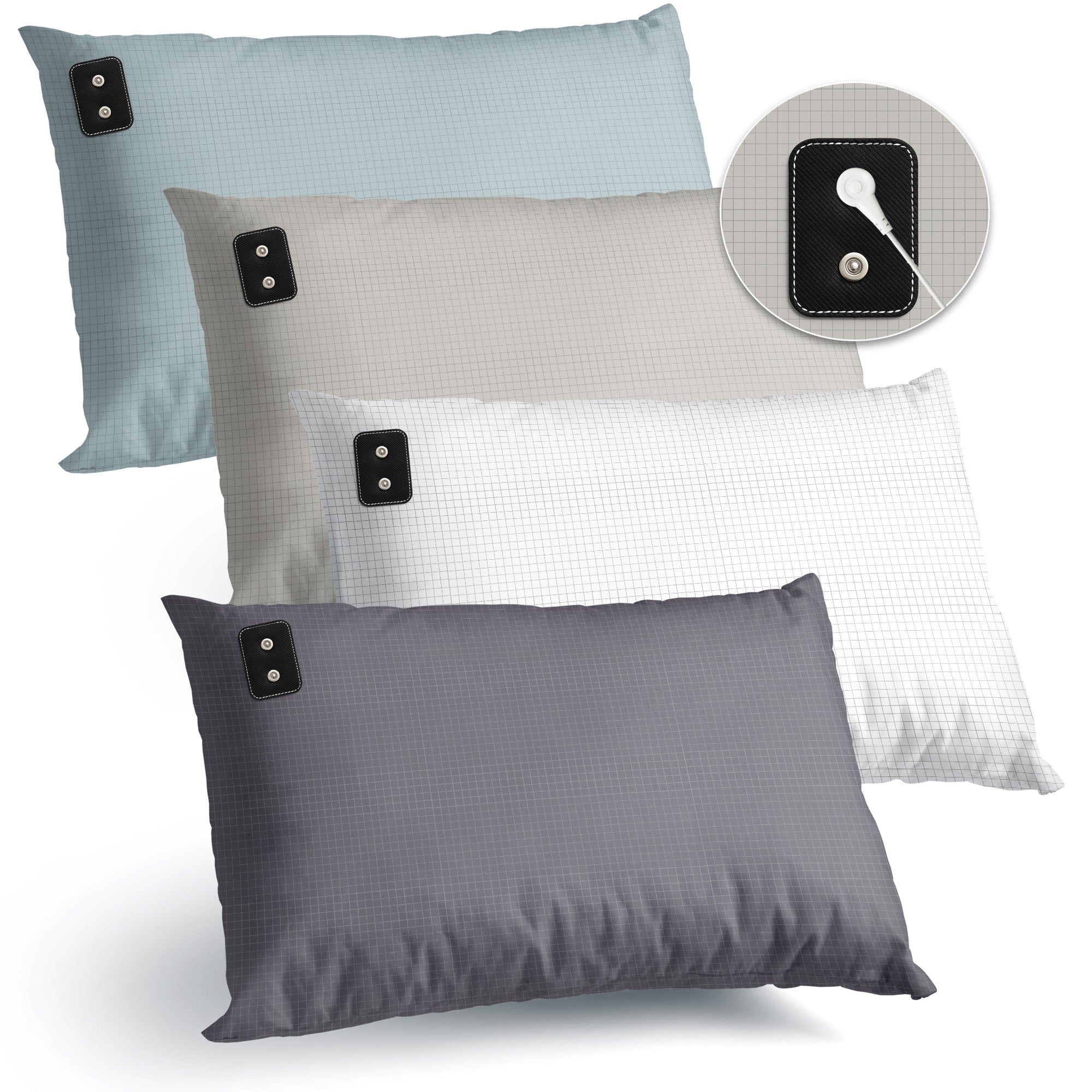 This grounding pillowcase is a great addition to an earth grounding mat for bed, a grounding sheet, a grounding mattress pad, or other bed grounding devices. This pillow case operates on its own grounding plug.