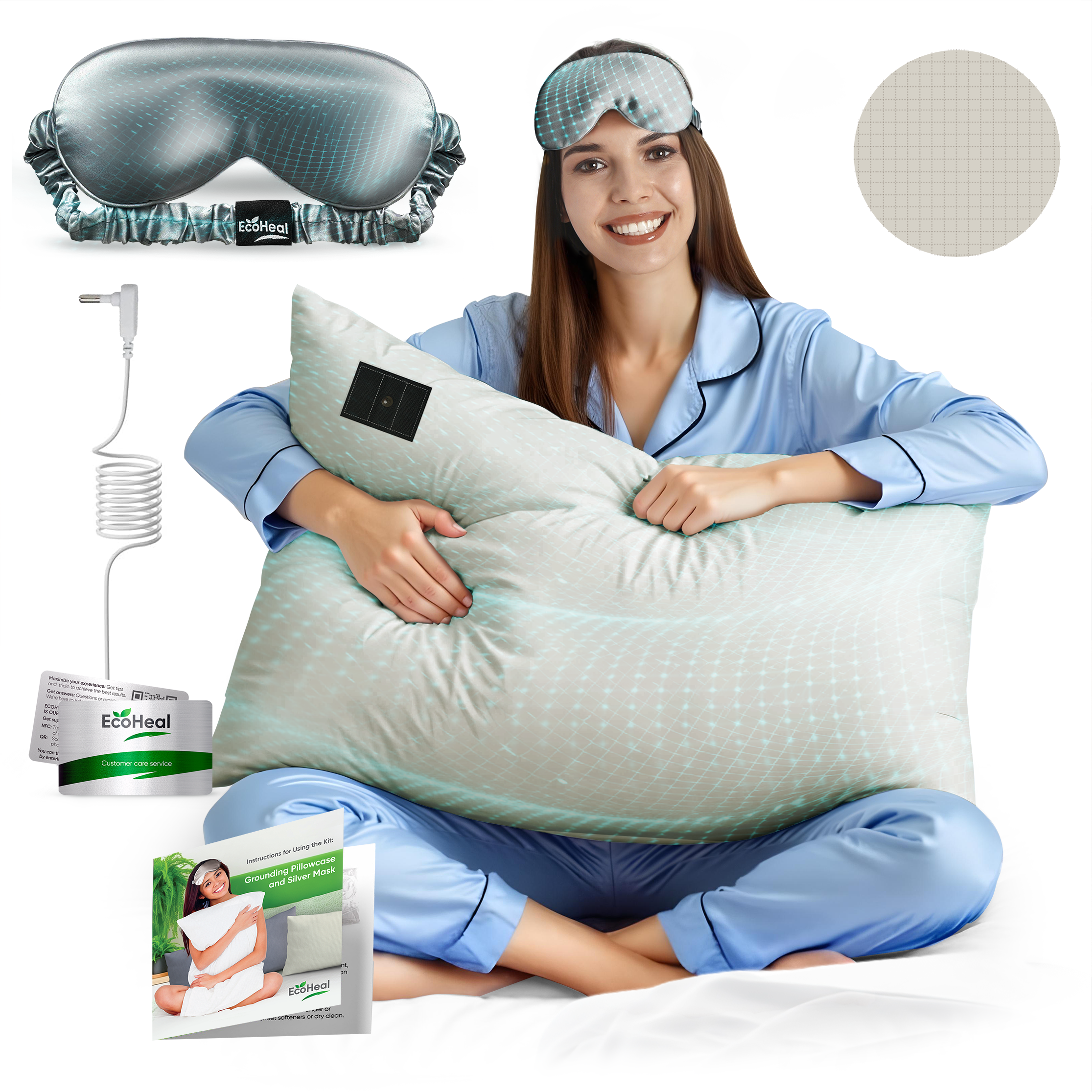 EcoHeal grounding pillowcases are designed to bring those same benefits to your nightly routine. Woven with conductive silver threads, they connect to a grounded outlet and let your body naturally recharge — no electricity, just pure Earth energy. It's like resting your head on nature itself, every night.